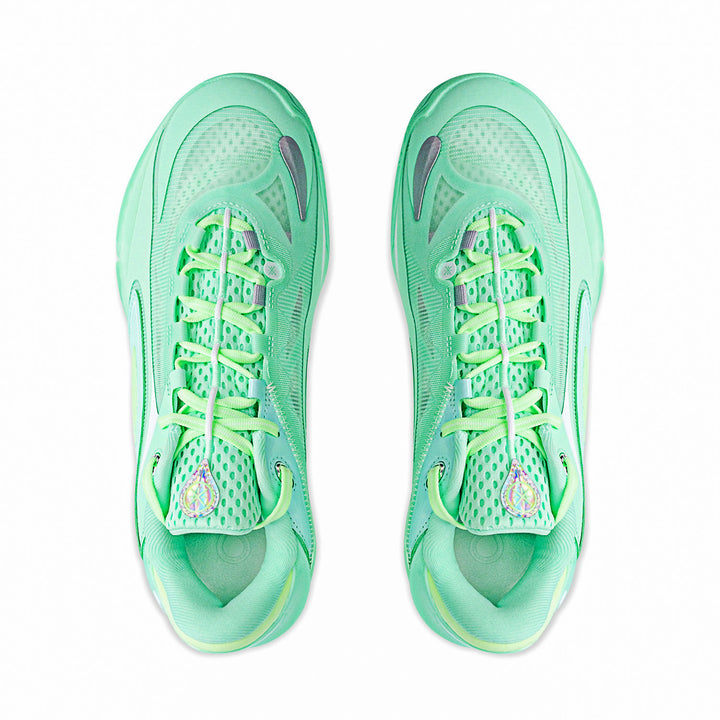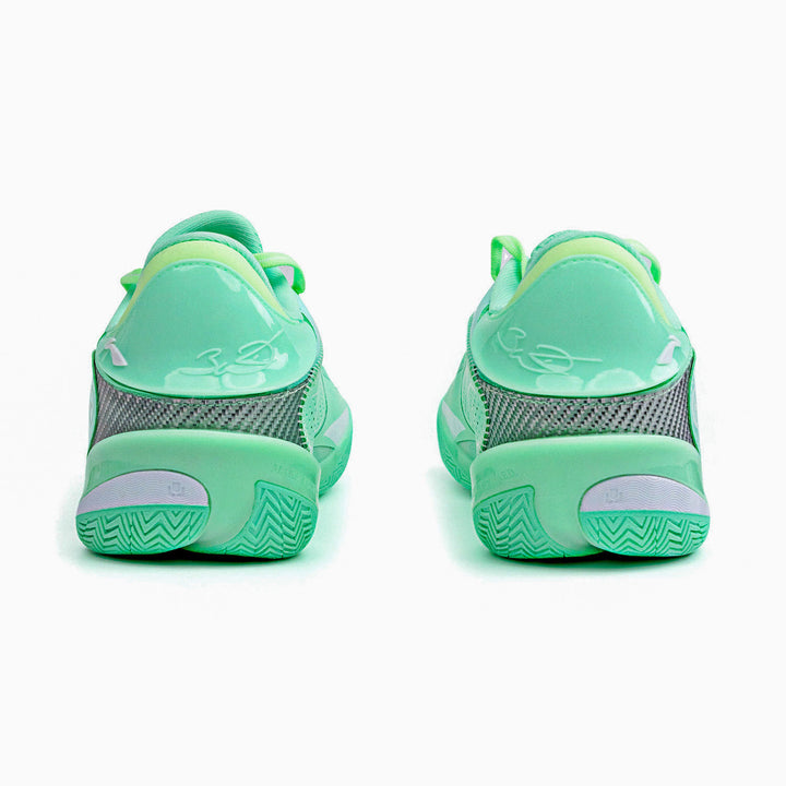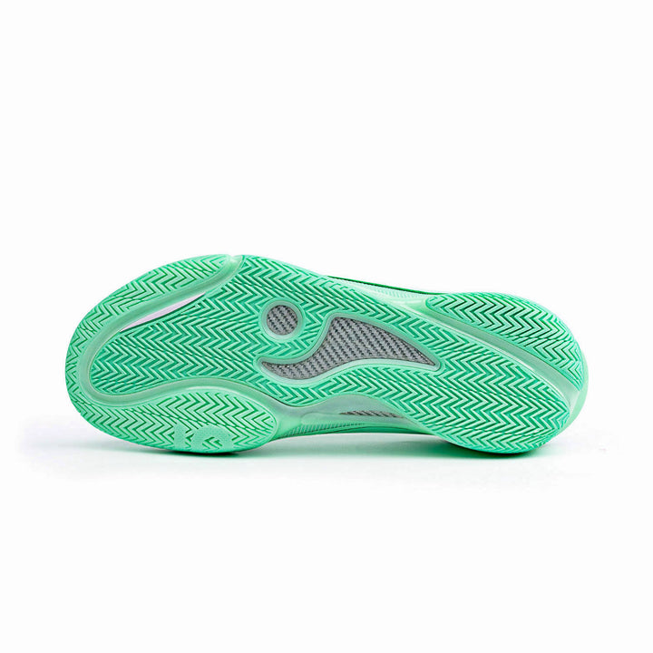 Parte superior fabricada con varios materiales para una sensación de ajuste excepcional y contacto con la cancha, que ayuda en movimientos explosivos. Diseño de color limpio en verde claro.