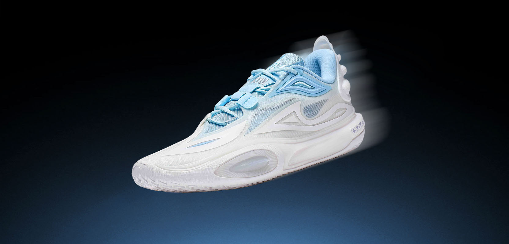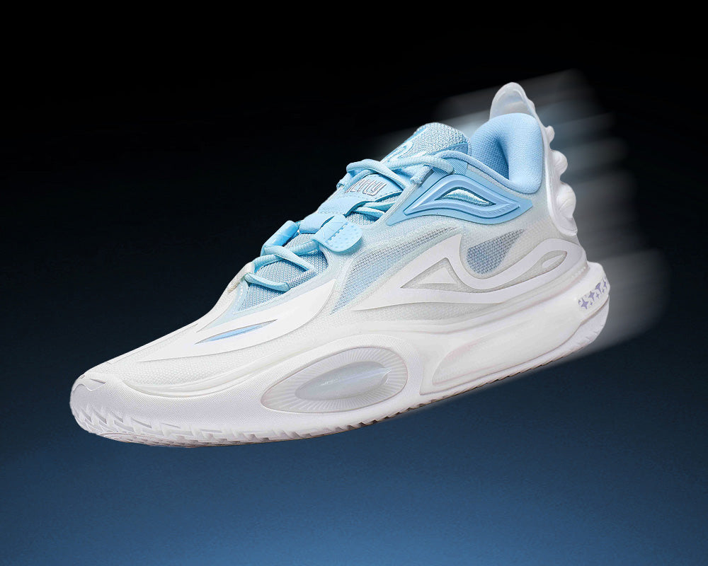 Diseño superior inspirado en energía cósmica y silueta basada en líneas dinámicas de autos deportivos. Corte bajo con drop talón-punta reducido a 7 mm (0,275 pulgadas) para menor peso y mejor sensación en cancha.