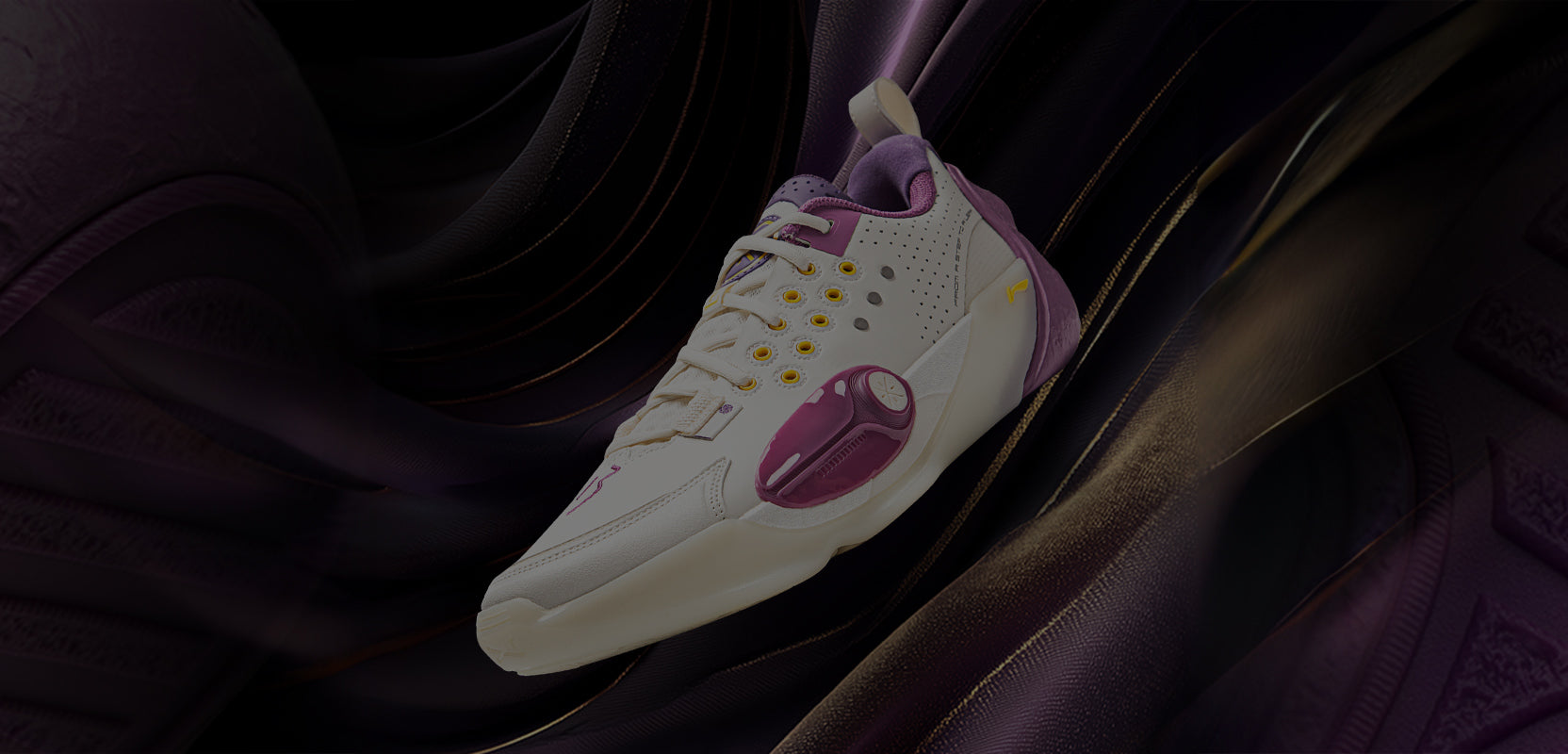 Diseño del talón inspirado en cuevas lunares. Diseñado en rosa y decorado con elementos en azul. La firma de Dwyane Wade está ubicada en el talón.