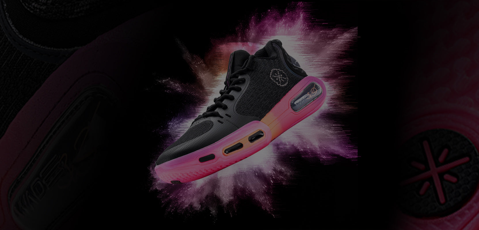Pieza de TPU anti-torsión en forma de horquilla para optimizar la transmisión de fuerza bajo la palma del antepié, combinada con un ángulo de curvatura pronunciado que favorece el flujo de energía durante la transición talón-antepié, logrando así arranques explosivos y saltos potentes.