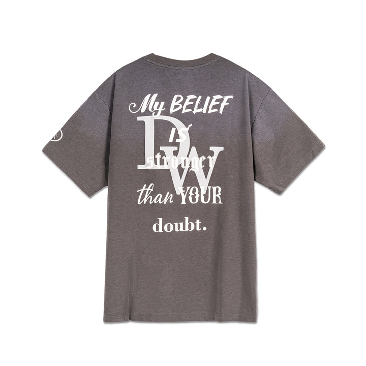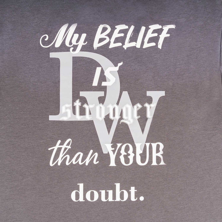 Decorado con la imagen de Dwyane Wade en la parte frontal y la famosa frase "My belief is stronger than your doubt" ("Mi convicción es más fuerte que tu duda") en la parte posterior.